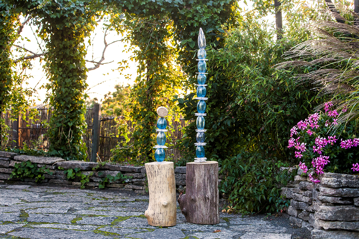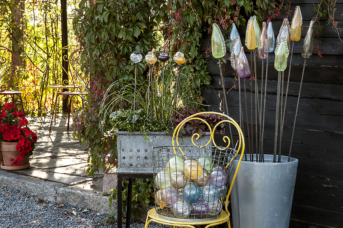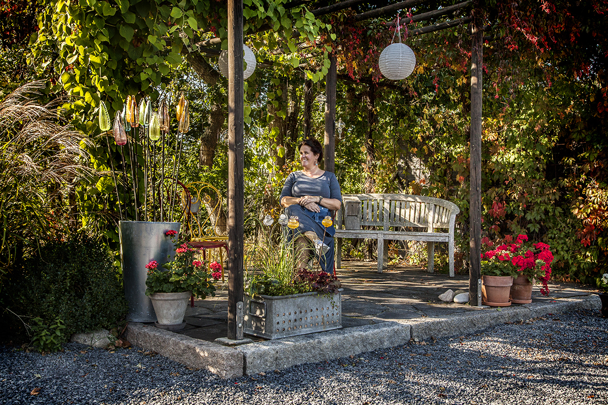 I have always had a great interest in gardens and gardening and I gladly turn to nature for inspiration when I create. In the glass garden you will find my garden art which is in interplay with the beautiful glass works on the inside. Welcome to sit down in the garden to enjoy my art.