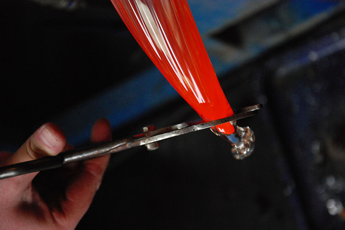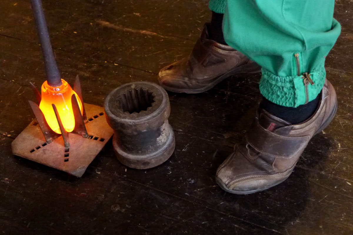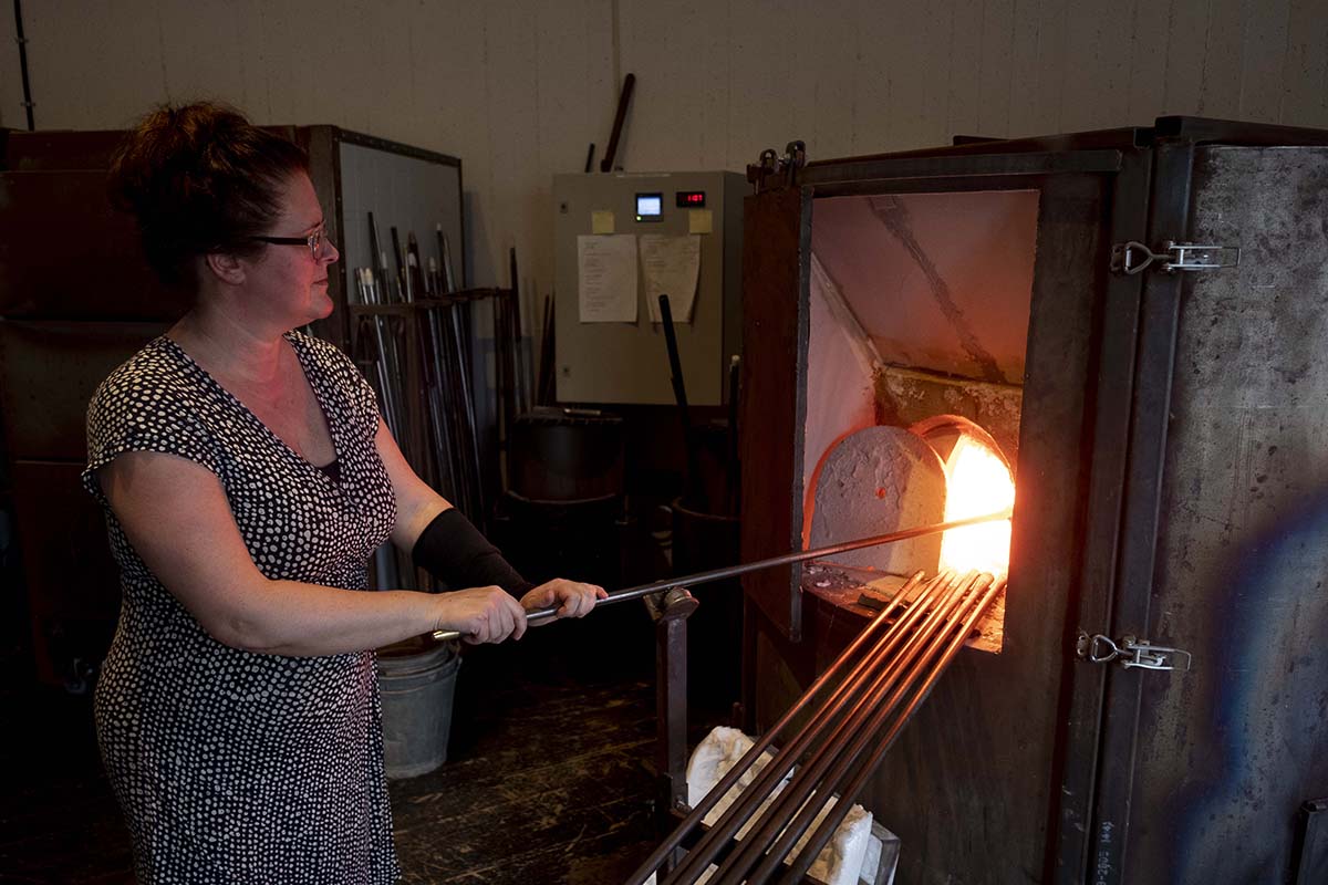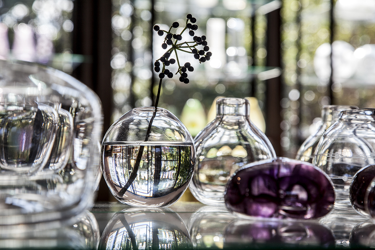 In the glassworks I shape and blow all my glass that is for sale in the shop, the shop being in direct connection to the glassworks. I often do the after-treatment of my products with surface engraving, polishing and blasting.