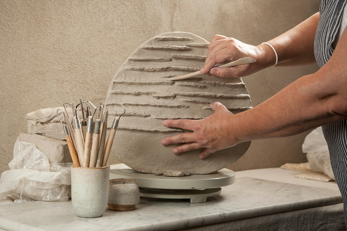 I Keramikstudion finns plats för drejning och olika byggtekniker. Malin skapar främst skulpturala verk i lera med tillhörande glasdetaljer. Hon håller även kurser och events där deltagarna ges möjlighet att utforska sin kreativitet.