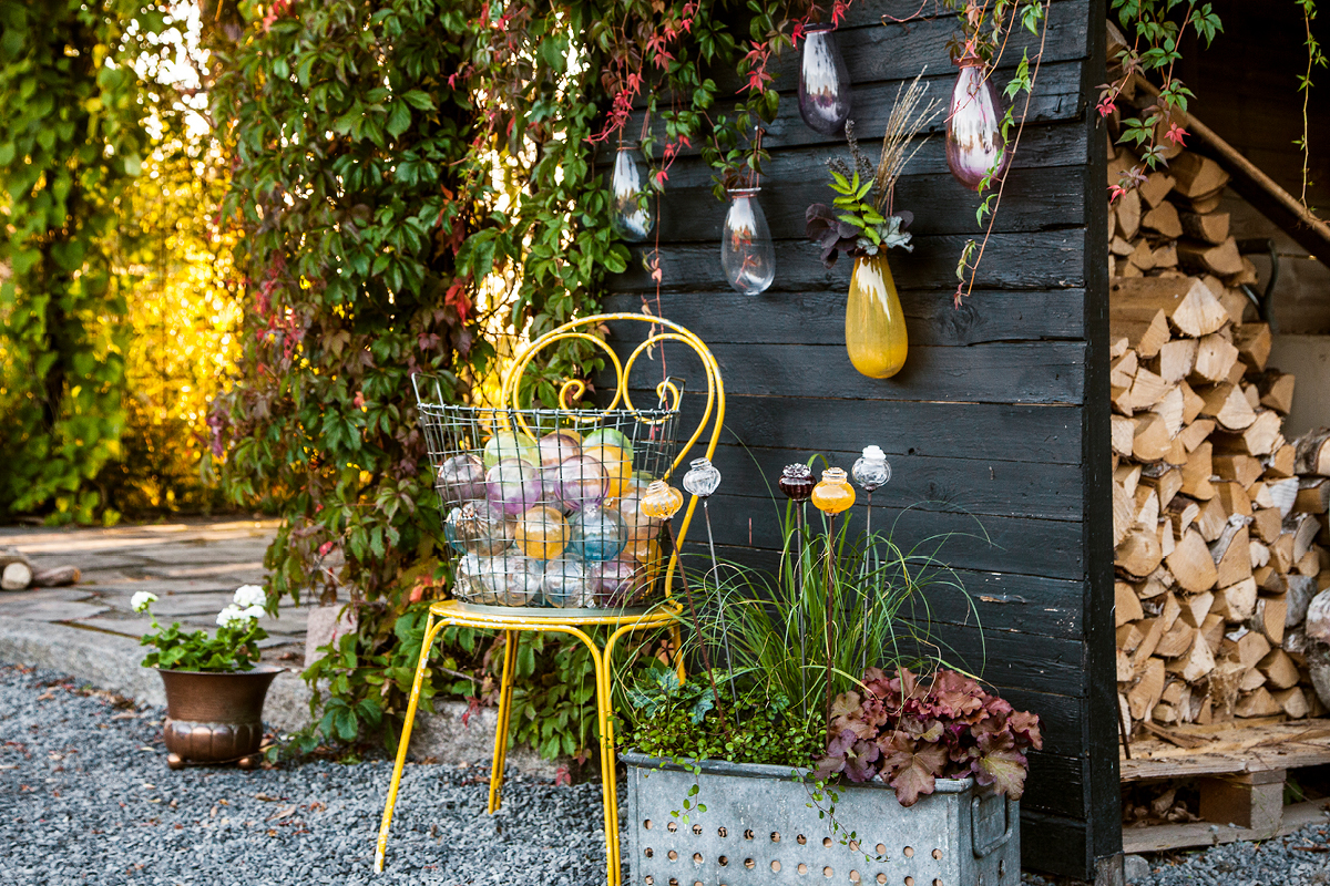 I butiken hittar ni allt från bruksglas och keramik till skulpturala verk. Trädgården pryds av fågelbad, krukor och annan trädgårdskonst – perfekt för den som uppskattar det sparsmakade. Allt är unikt och tillverkat på plats.